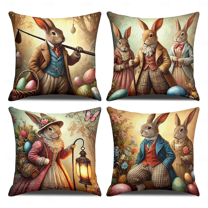 Vintage Easter Decorative Toss Pillows Cover 1PC Bunny Soft Square Couch Cushion Case Pillowcase for Bedroom Livingroom Sofa Chair 4