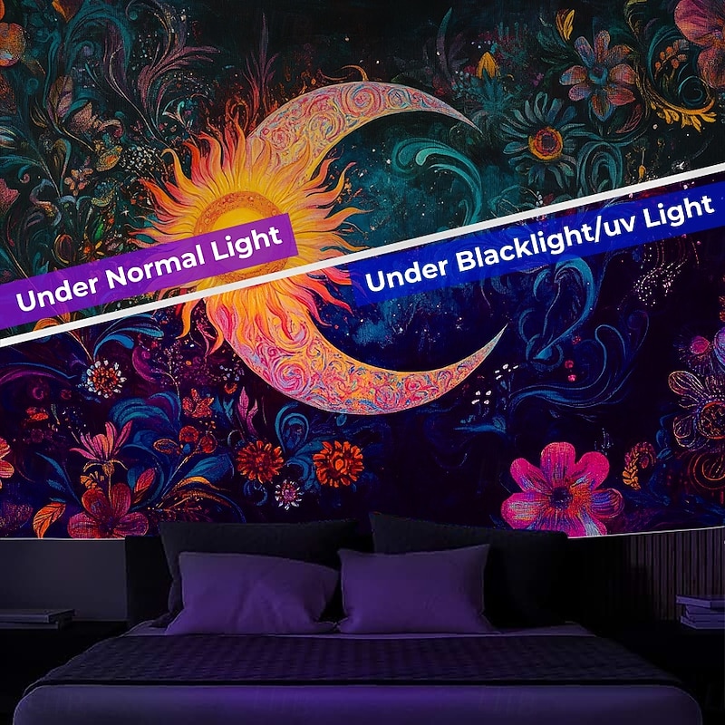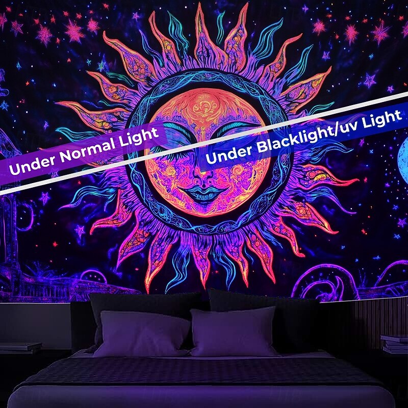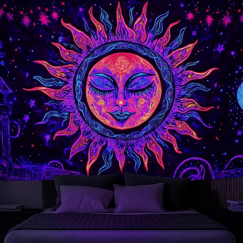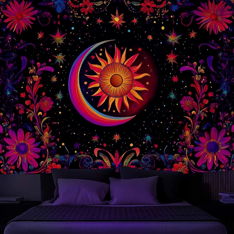 $17.99 - Boho Blacklight Tapestry Glow in the Dark Glow Party UV Reactive Sun and Moon Trippy Misty Mushroom Nature Landscape Hanging Tapestry Wall Art Mural for Living Room Bedroom 2025. Shop for cheap Blacklight Tapestries online? Buy at lightinthebox.com on sale today!