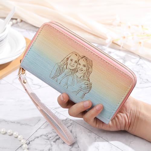Personalized Photo Wallets for Women Custom Engraved Picture PU Leather Wallet Credit Card Clutch Long Wallet for Girlfriend Mom