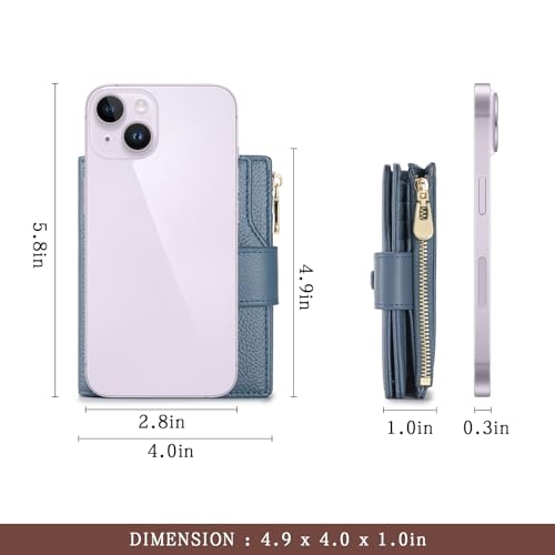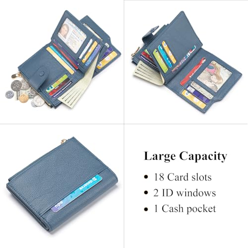 Genuine Leather Wallets for Women RFID Blocking Bifold with Zipper Pocket, 2 ID Windows, 18 Card Slots, Blue 5