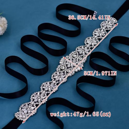 • Size: Handmade inlaid size of bride's belt (width * length) 1.97 * 14.41 inches. Ribbon size (W * L) 0.78 * 108.2IN; Tends to match tremendously dresses/fabrics and is also suitable for most body types.