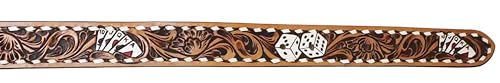Cowboy Cowgirl Poker Western 1-1/2" Wide Hand Tooled Leather Belt 26FKPoker