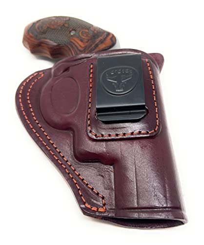 Brand: Cardini Leather USAHand Orientation: RightMaterial: LeatherStyle: ClassicColor: Red Wine Right Hand DrawClosure Type: Clip,SpringManufacturer: Cardini LeatherUPC: 810138650387[Premium Handmade OWB Leather Holster] This J Frame leather holster is made of 100% Premium Colombian leather | Perfectly forms to your J Frame Revolver after moderate use, and also protects your revolver from scratches with its ultra-soft interior | Multiple custom leather & stitching colors available | Perfect IWB holster for concealed carry (inside the waistband)![Key Features] Durable Double-Stitch to help the holster last through excessive wear and tear | Raised back Sweat Shield to protect your revolver from moisture and body from chafing | Versatile Metal Clip ensures a secure grip on the waistband or belt, and can be worn on the hip, back, or appendix carry positions | Tanned with natural, biodegradable vegetable dyes to protect your health, your firearm, and the environment | Level 1 Retention for the fastest, unobstructed draw![Limited Lifetime Warranty] 100% satisfaction guarantee with a limited lifetime warranty for any manufacturer defects. We strive for happy lifetime customers, so the premium durability and craftsmanship of our holsters is our top priority for you and your family - from our family to yours![Perfect Leather Holster for revolvers with 2.5 Barrels or Less] Fits Smith & Wesson Model 60, K Frame, N Frame | Rock Island Armory M206 38 Special 2 | Other 38 special revolvers of similar size[How to Use this IWB Leather Holster] This leather holster can be worn on the hip, back, or appendix carry positions, providing effective concealment and quick, reliable access based on your preference. K frame holster, N frame holster, gun holster for men concealed carry Perfect for everyday use. first-class materials and excellent craftsmanship ensure long-lasting durability.