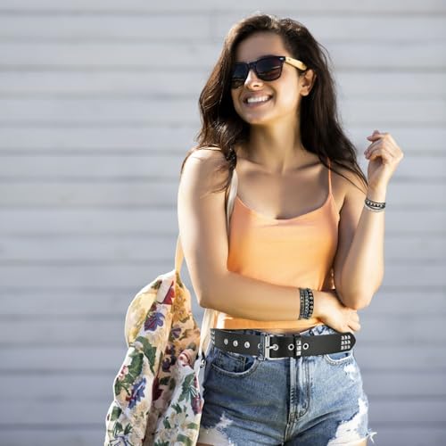 • Studded Belt: Made of PU leather with a sturdy metal buckle and metal eyelets, this punk belt offers a chic yet subtle look. superb for casual, emo, scene, goth, grunge, and alternative outfits for men and women