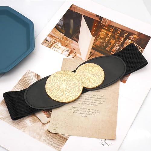 More information about Women's Wide Waist Belt Vintage Elastic Waistband Leather Stretchy Belts for Dresses