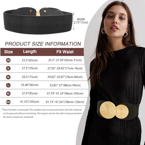 • Size: Women's wide waist belt are available in 6 sizes, width of elastic belt: 7cm/2.75 in.With leather snap closure. A must-have waist wide dress belt, with a vintage look, It is a good accent piece to dress up your any outfits