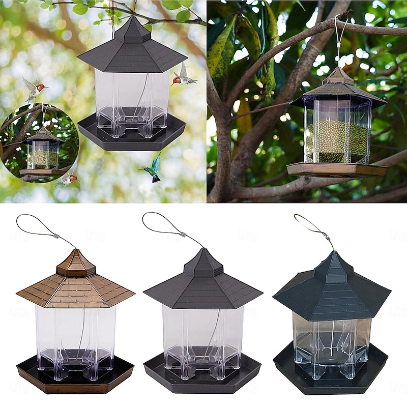 $11.49 - Wild Bird Feeder Hanging Waterproof Gazebo Birdfeeder with Roof Gray 2025. Shop for cheap Backyard Birding & Wildlife online? Buy at lightinthebox.com on sale today!