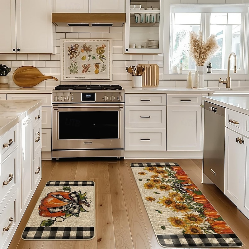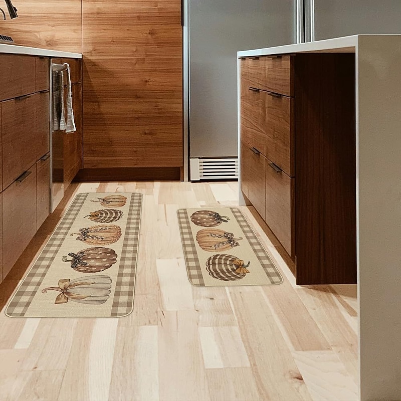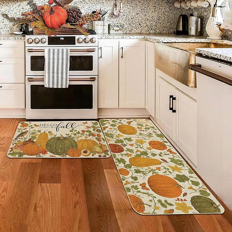 Why Choose Fall Autumn Pumpkin Linen Mats Set - Absorbent, Oil-Resistant Kitchen & Entryway Door Mats, 2-Piece Set For Thanksgiving?
