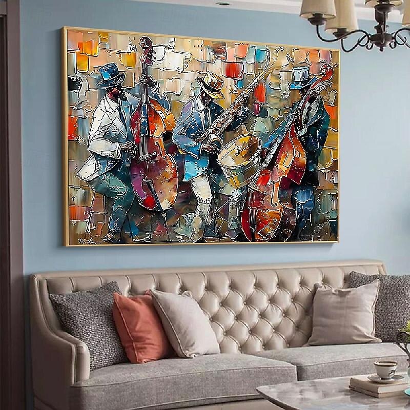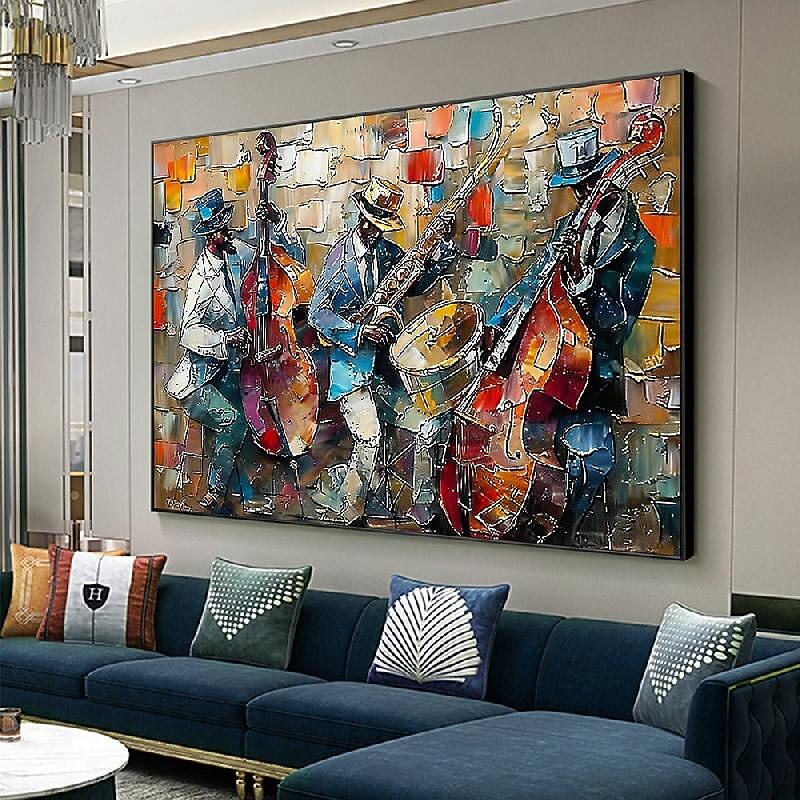 $116.99 - Large Abstract Jazz Band Oil Painting on Canvas hand painted Wall Art Black Jazz Music Art painitng Custom Painting Fashion Decor for Living Room Home Decor 2025. Shop for cheap Abstract Paintings online? Buy at lightinthebox.com on sale today!