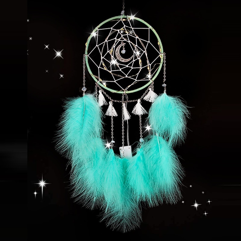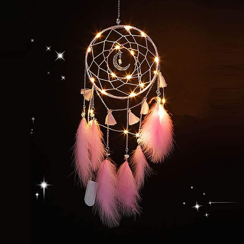 Why Choose 1pc Dream Catcher Handmade Gift Feather Hook Moon Pattern Wind Chime with One Circles Ornament Wall Hanging Decor Art Boho Style Without Light?