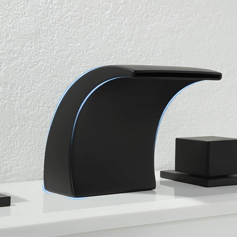 Highlights LED Waterfall faucet mixer No Needed Batteries and the LED light will change along with water temperature. Cold Water - Blue; Warm Water - Green; Hot Water - Red, offer extra relaxation and visual fun and avoid the child and the old being scalded. Deck mounted 3 holes dual handle, The waterfall spout delivers a graceful sheet of LED water to make any washing a blissful experience while pleasing your eyes. Mysterious look. From its durable, long-lasting construction to the contemporary and decor-complementing design, this faucet belongs in your bathroom. The waterfall bathroom faucet provides clear and steady laminar flow. Provides lovely water flow for bathrooms and bathtubs, 4 connection water hose included in package. Installation Instructions Include Easy Installation, Has Any Question Please Contact with us and Enjoy your LED Bathroom Faucet Joy. Note: Dear buyer, if the parcel is found to be badly damaged, please take a photo, reject it and contact us for resolution. Because of the size measurements are handmade, so there may be 1-3CM error. Please understand because of the light irradiation or computer display difference, so I can't guarantee photos and real color is 100% the same. Perfect for everyday use. excellent materials and excellent craftsmanship ensure long-lasting durability.