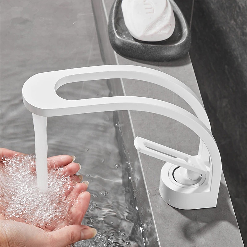 Basin Sink Mixer Taps, Deck Mounted Bathroom Sink Faucet, Brass Sinlge Handle with must-have and Cold Hose, One Hole Vessel Water Tap Chrome Black White Grey
