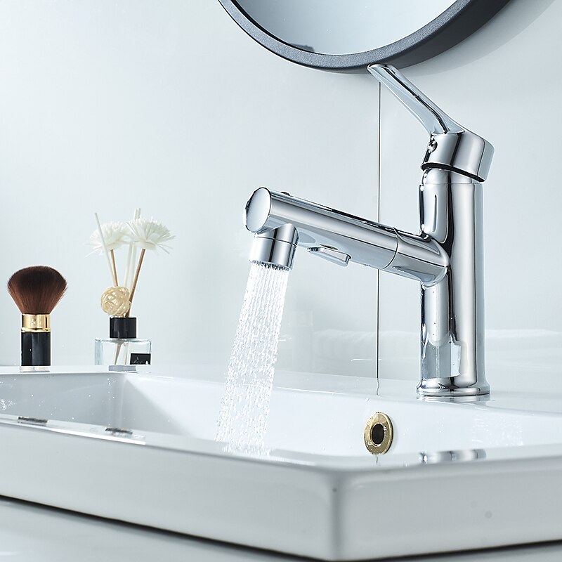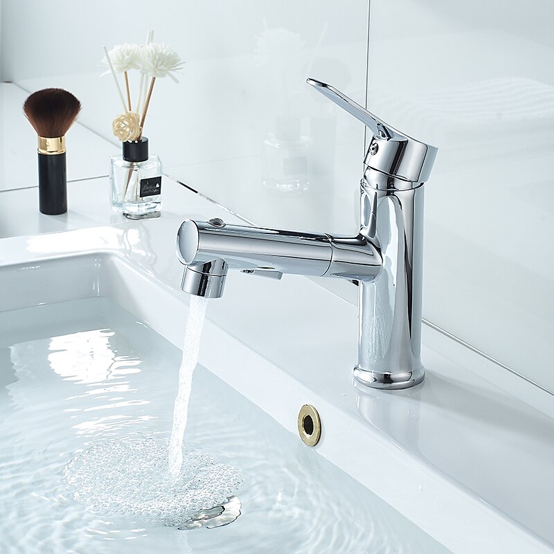 More information about Bathroom Sink Faucet - Pull out / Pullout Spray Electroplated / Painted Finishes Centerset Single Handle Two HolesBath Taps / Brass