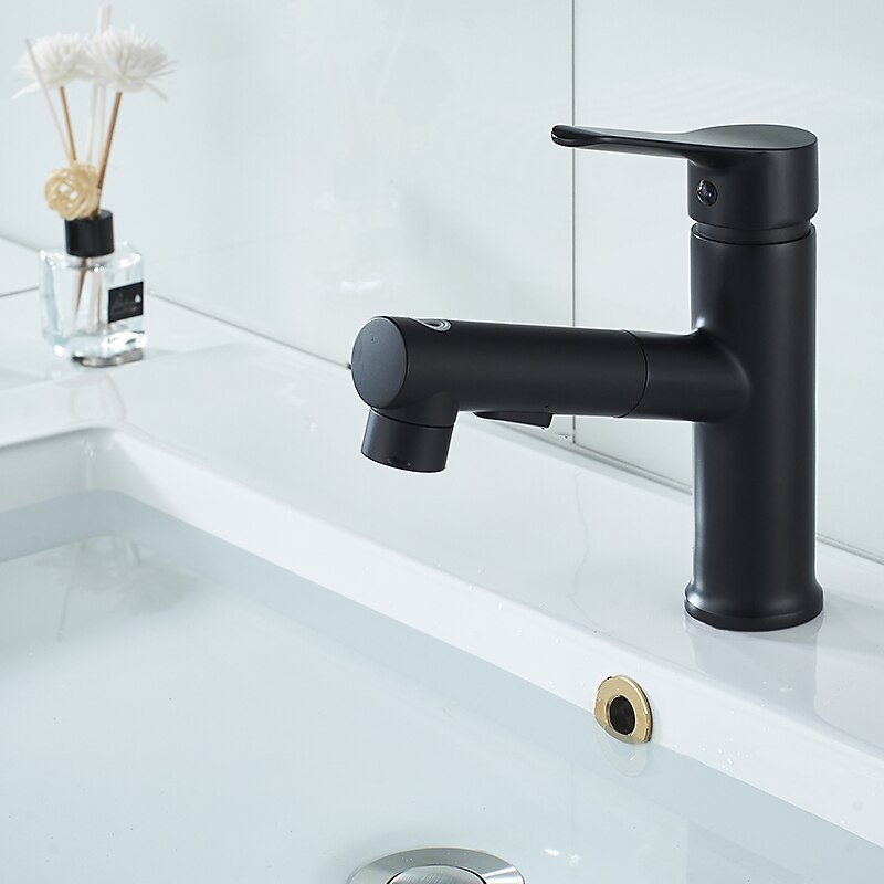 Bathroom Sink Faucet - Pull out / Pullout Spray Electroplated / Painted Finishes Centerset Single Handle Two HolesBath Taps / Brass 11