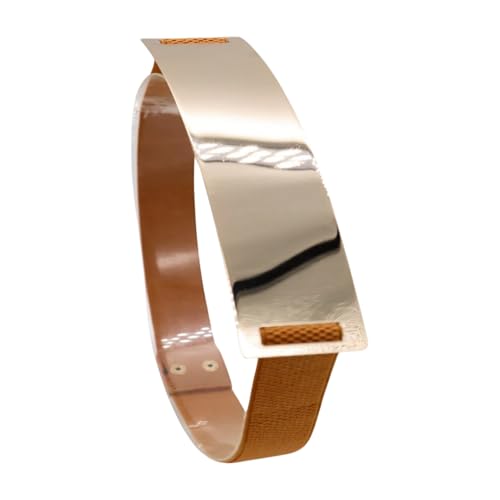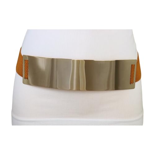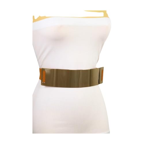 - Style: Fashion accessory that works seamlessly for both waist and hip placement. Material: Crafted from high-quality brown faux leather and a stretchy waistband for durability and comfort. Accents: Enhanced with a luxurious gold metal plate, adding a touch of glamour and modernity.