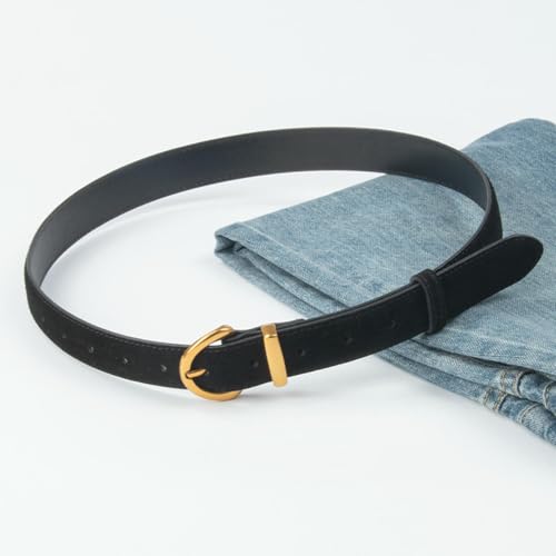 popular ! Fashion Women's Suede Belts For Jeans Dresses, 1.1" Ladies Shinny Belt Gold Pin Buckle Designer Belt For Pants