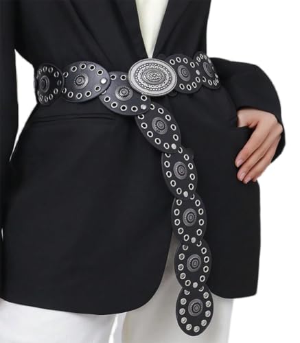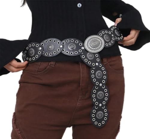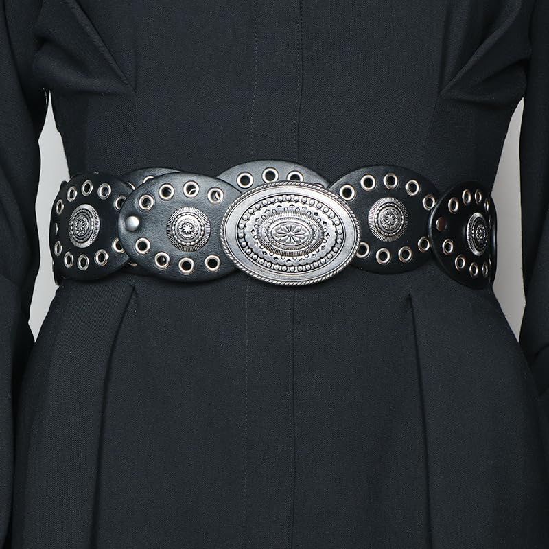 - [Design Style] Bold western-inspired wide disc buckle creates a statement piece for boho and cowgirl styles