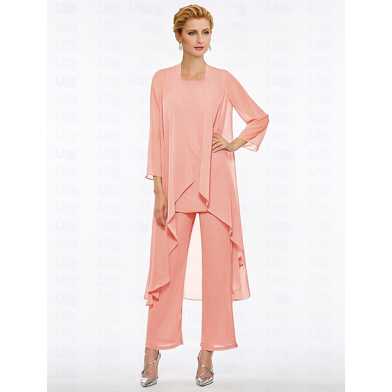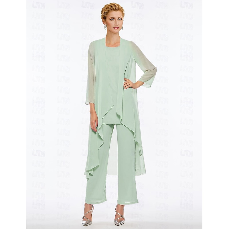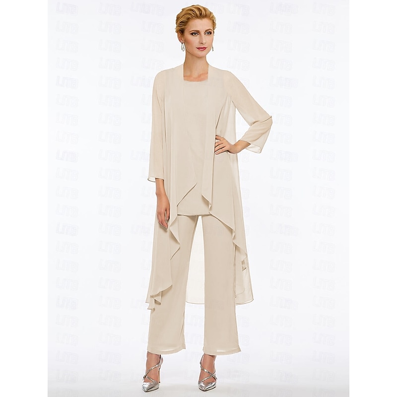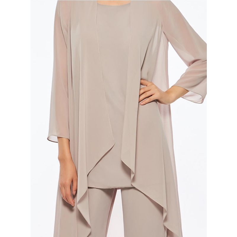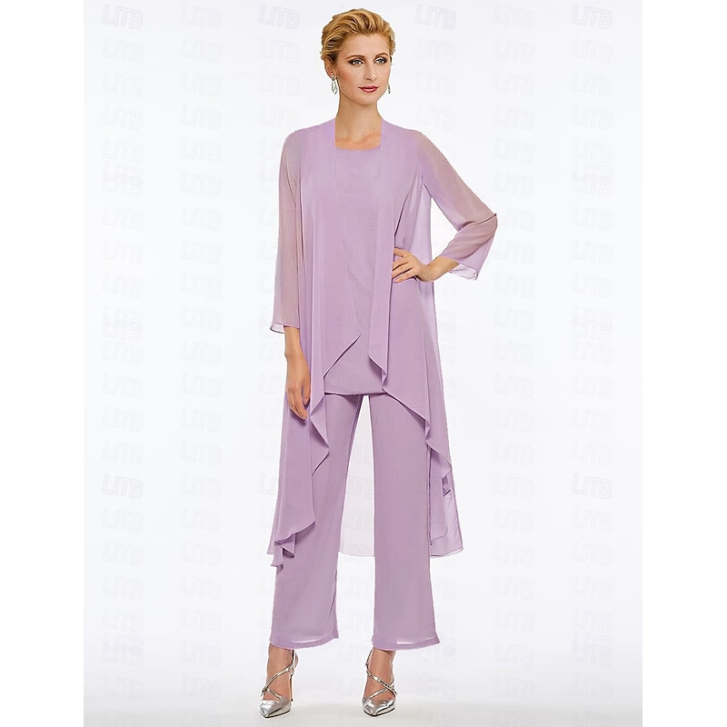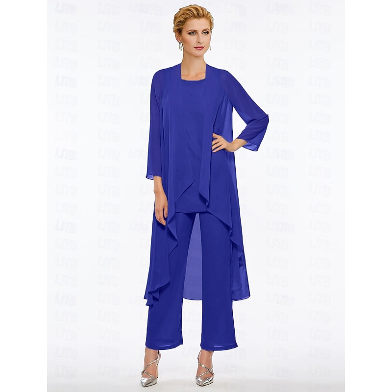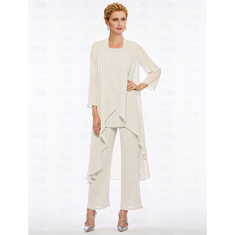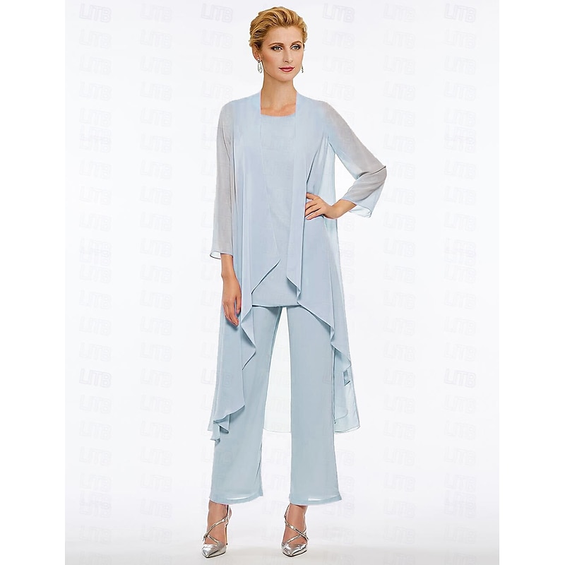Pantsuit 3 Piece Mother of the Bride Elegant Plus Size Floor Length Chiffon Sleeveless Wrap Included with Solid Color to impress 35