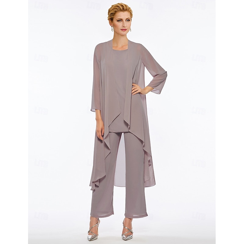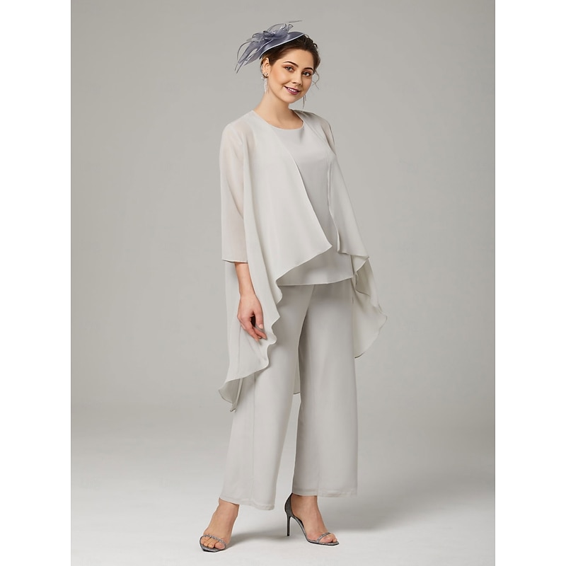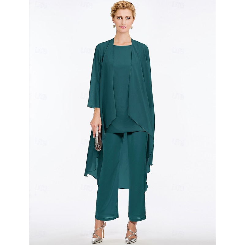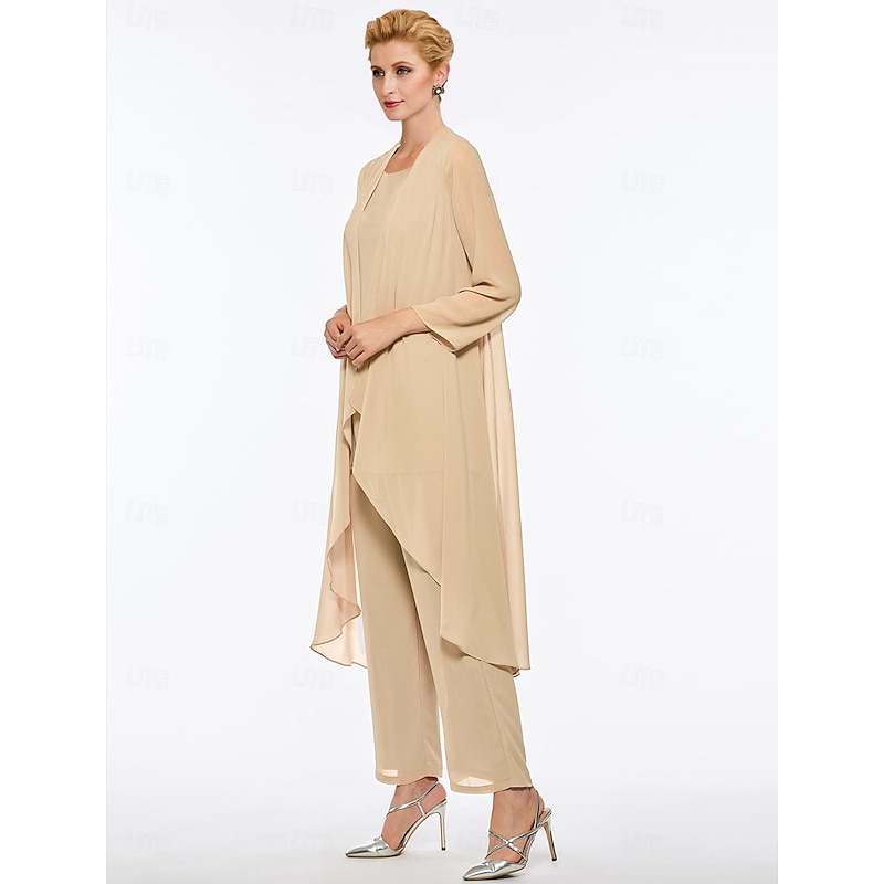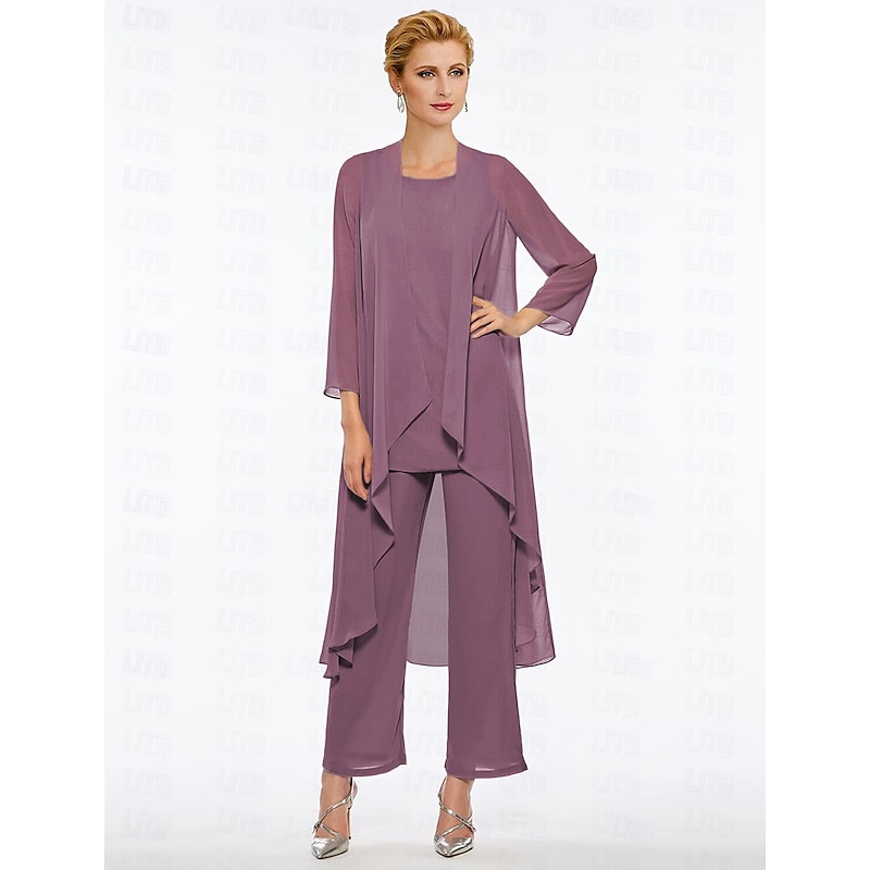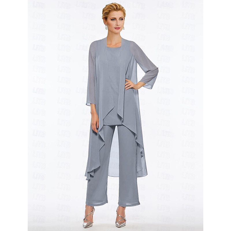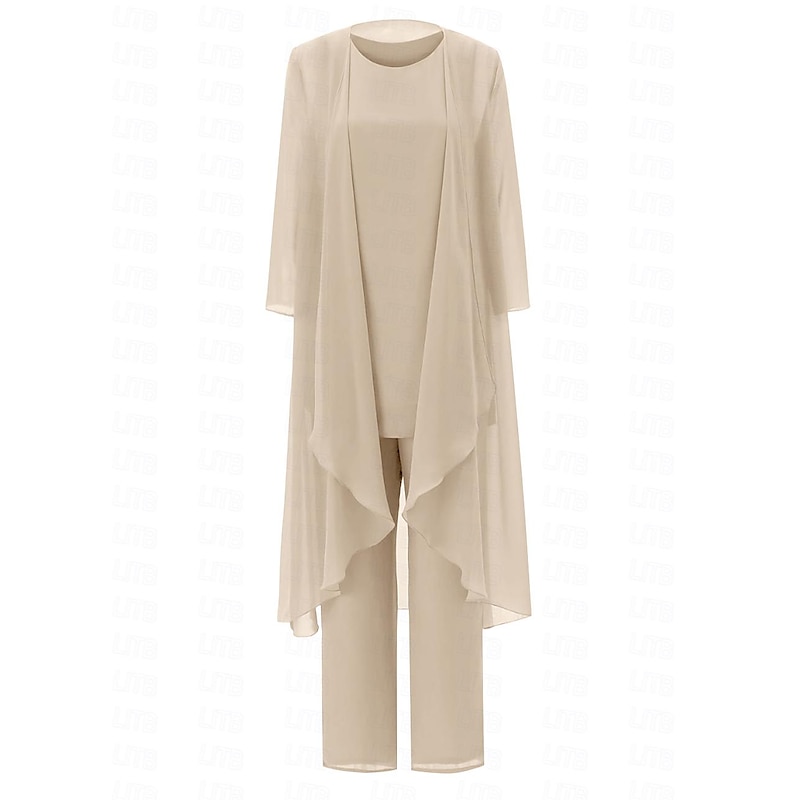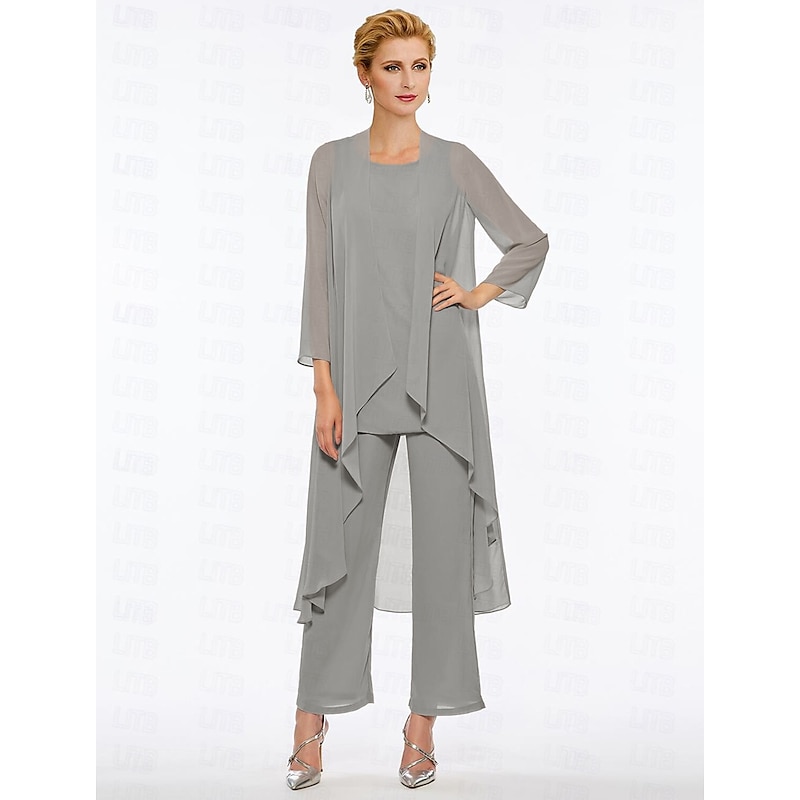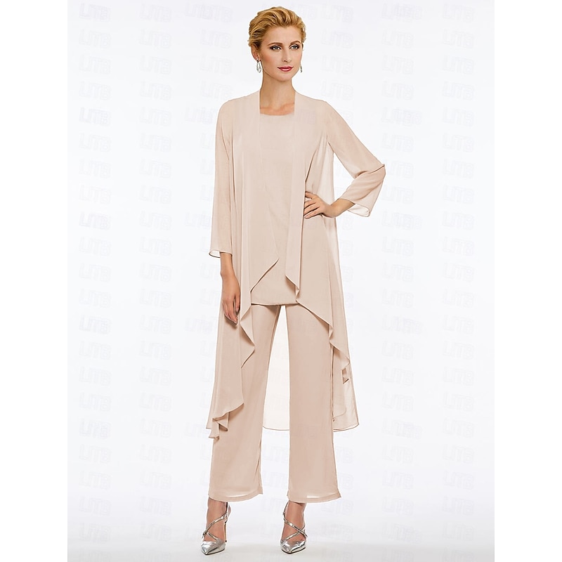 Pantsuit 3 Piece Mother of the Bride Elegant Plus Size Floor Length Chiffon Sleeveless Wrap Included with Solid Color to impress 35