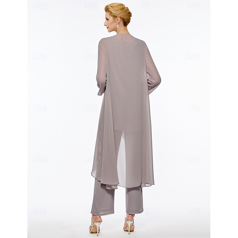Pantsuit 3 Piece Mother of the Bride Elegant Plus Size Floor Length Chiffon Sleeveless Wrap Included with Solid Color to impress 4