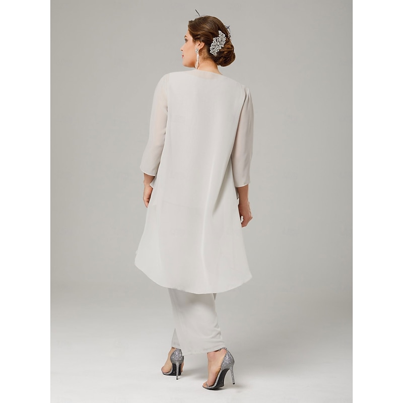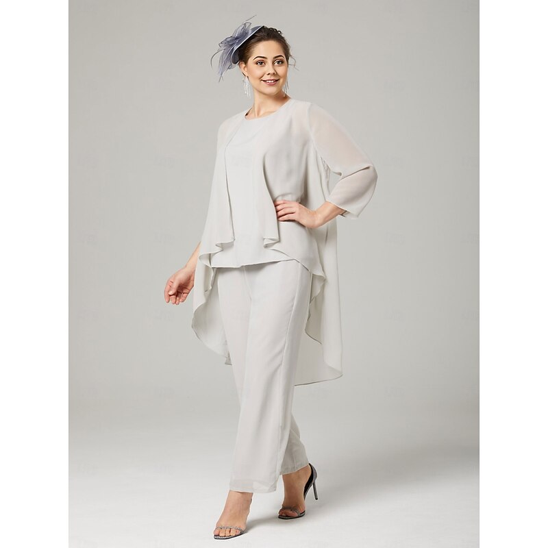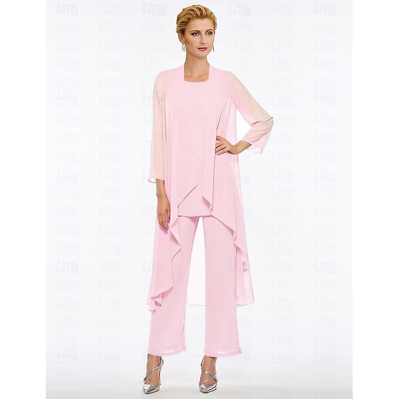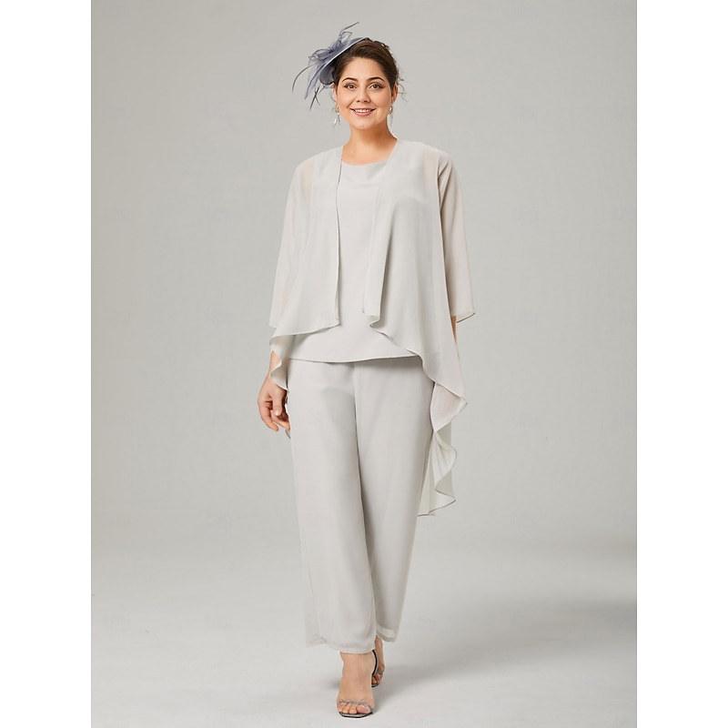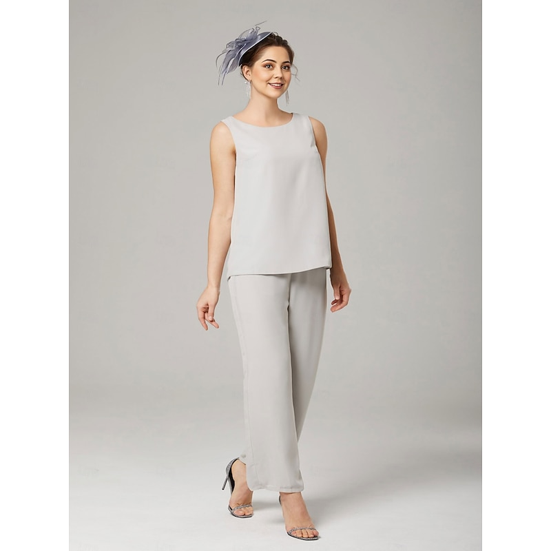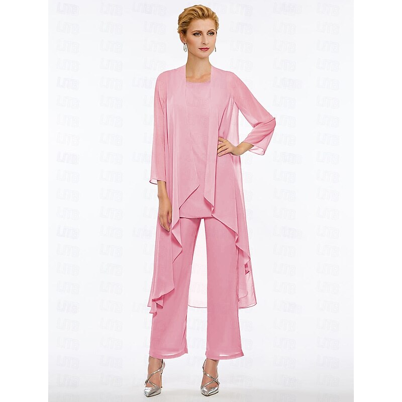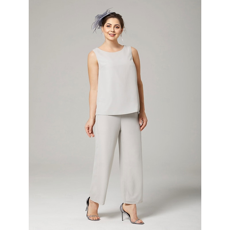 Pantsuit 3 Piece Mother of the Bride Elegant Plus Size Floor Length Chiffon Sleeveless Wrap Included with Solid Color to impress 25