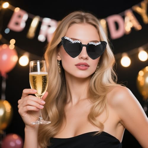 Care instructions: Clean lenses with a microfiber cloth, avoid contact with water, store in a protective case when not in use.Origin: ImportedSlay-Worthy Design: Heart-shaped frames + pink gradient lenses = Insta-worthy looks. Stand out from basic sunnies!BIRTHDAY BADDIE Flex: White bead letters spell out your mood. Whether you’re popping bottles or posting thirst traps, these glasses say you’re the queen of the scene.Own Your Birthday Vibes: Black crystals stacked tight—catch the light, steal the spotlight.. Pair it with dresses, denim, or that hot new bikini.Unisex Fit: Lightweight, comfy for all-day wear. Girls' night? Pool party? You’re covered.For the Ultimate Birthday Drip: Throw these in your squad’s gift bags or cop a pair for yourself. superb for everyday use. first-class materials and excellent craftsmanship ensure long-lasting durability.