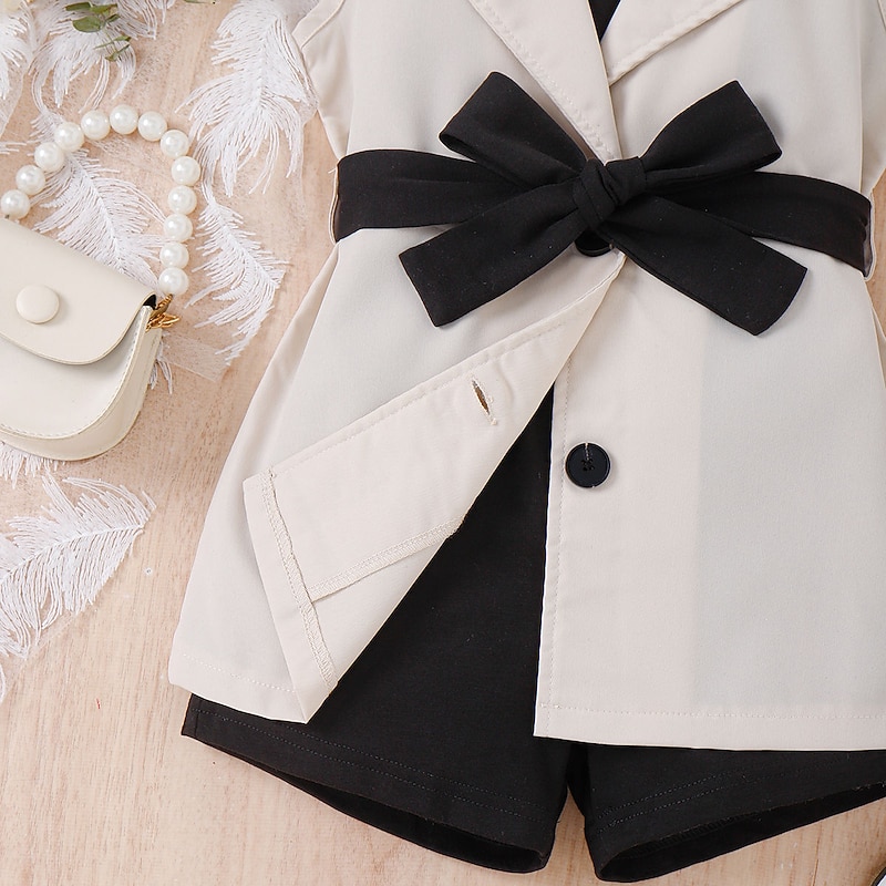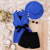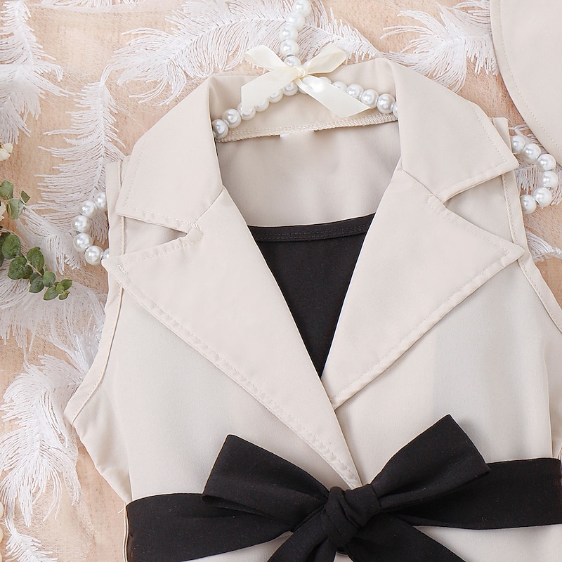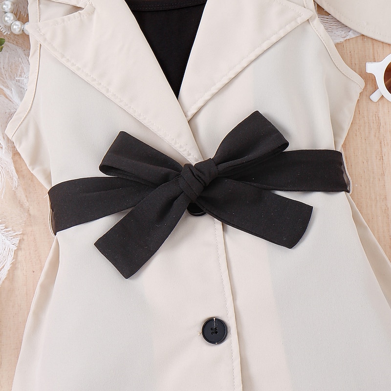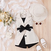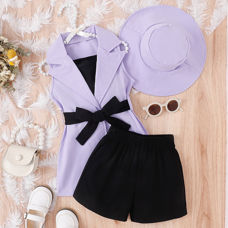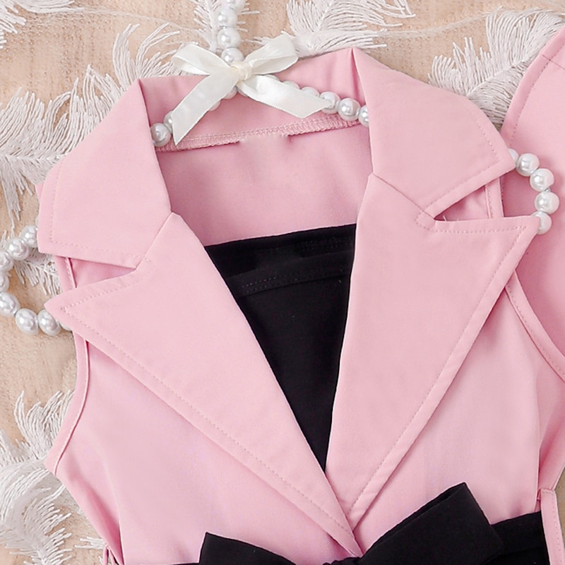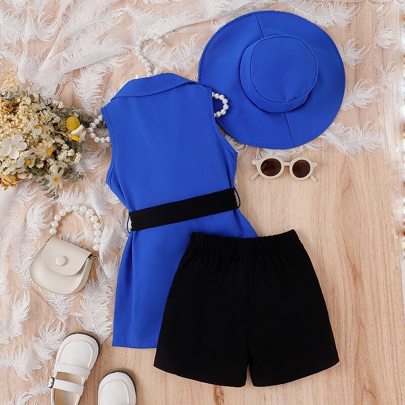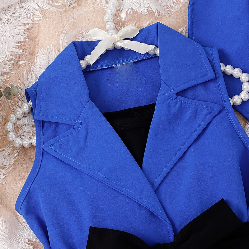popular ! 3 Pieces Toddler Girls' Solid Color Dress Set Set Sleeveless Active School 3-7 Years Spring Black Pink Blue