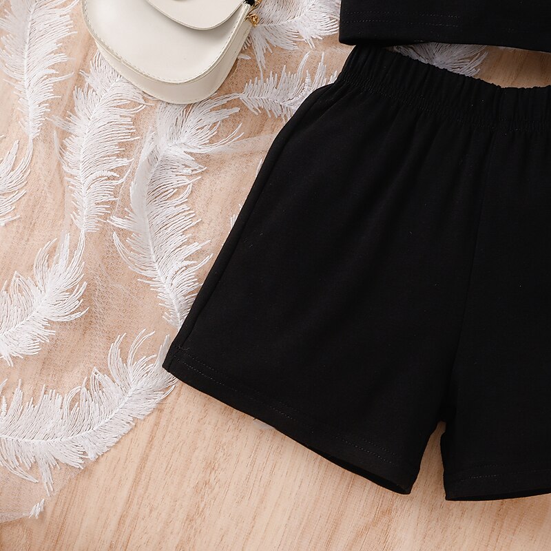 3 Pieces Toddler Girls' Solid Color Dress Set Set Sleeveless Active School 3-7 Years Spring Black Pink Blue 9