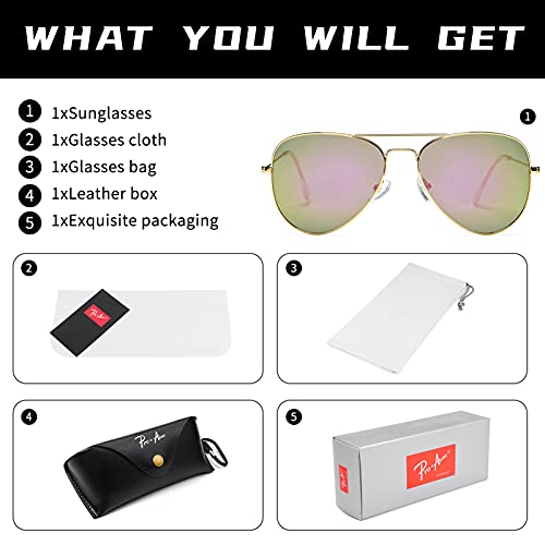Pro Acme retro Polarized Aviator Sunglasses for Women Men, Driving Sun Glasses Polarized Lens Lightweight Metal Pilot Frame UV400 Protection (Gold | Purple | Without Logo)