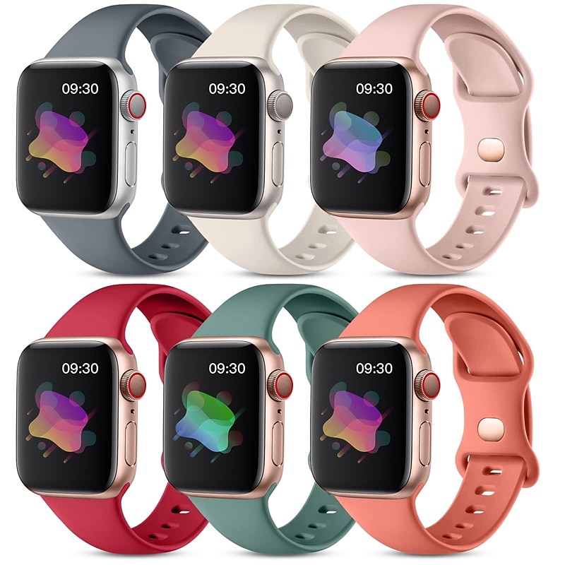 6 Pack Sport Band Compatible with Apple Watch band 38mm 40mm 41mm 42mm 44mm 45mm 49mm Women Men Waterproof gentle Silicone Strap Replacement Wristband for iwatch Series Ultra 8 7 6 5 4 3 2 1 SE