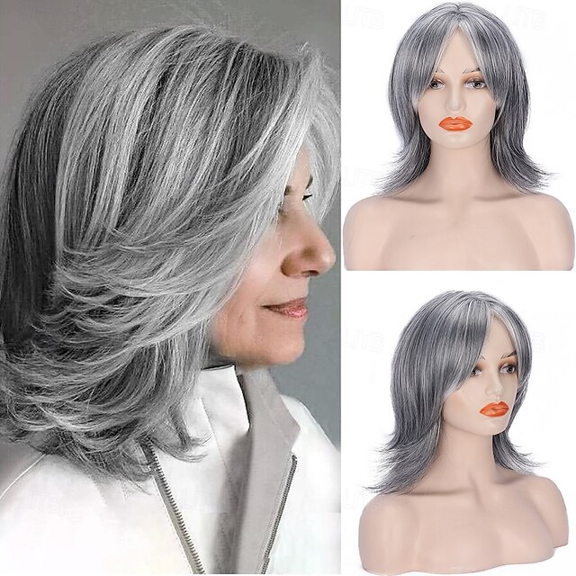 $26.99 - Silver Gray Layered Wig with Curtain Bangs for Women Synthetic Light Grey Ombre Highlight Bob Wig Short Pixie Cut Layered Wavy Wig for Women 2025. Shop for cheap Older Wigs online? Buy at lightinthebox.com on sale today!