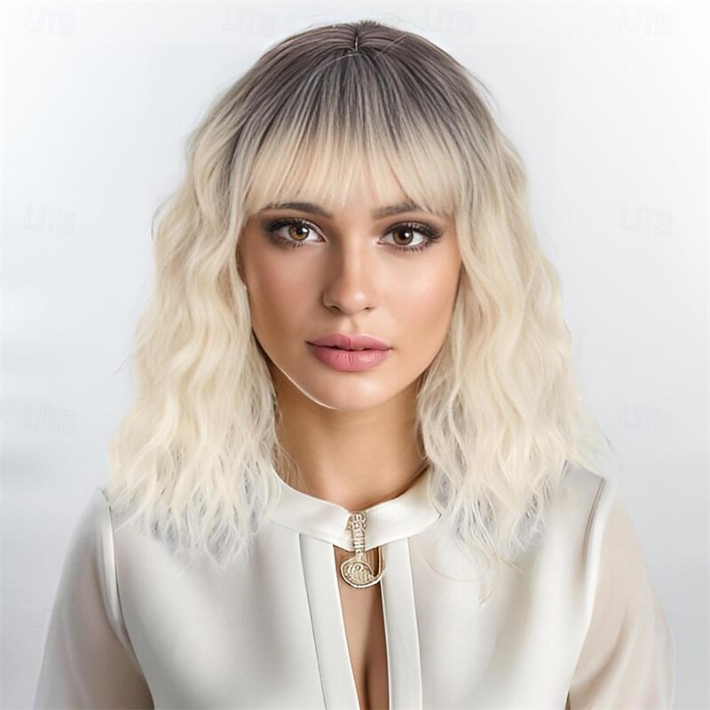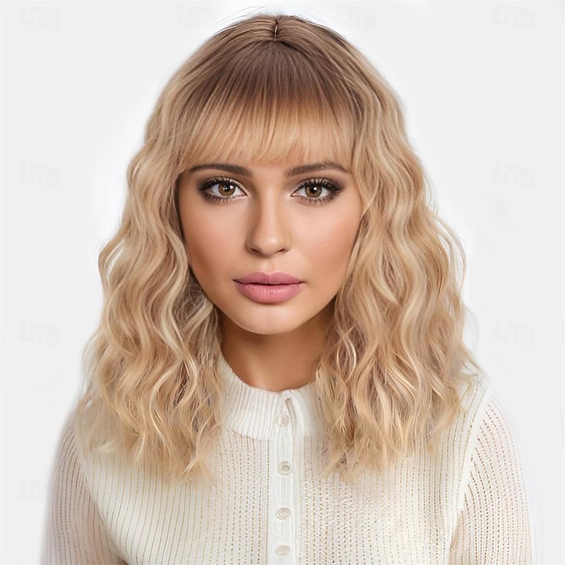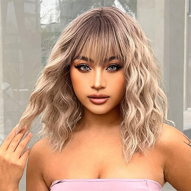 $26.99 - Short Ombre Blonde Wig With Bangs Shoulder Length Curly Wavy Bob Wig for Women Natural Looking Synthetic Curly Blonde Bob Wig for Party and Daily Wear 2025. Shop for cheap Synthetic Trendy Wigs online? Buy at lightinthebox.com on sale today!