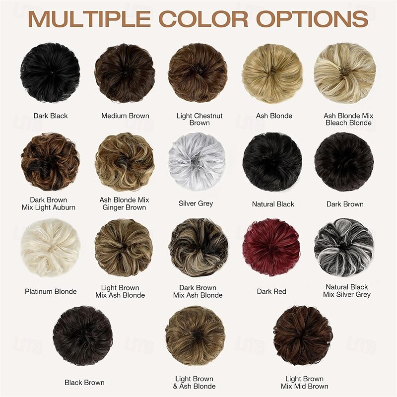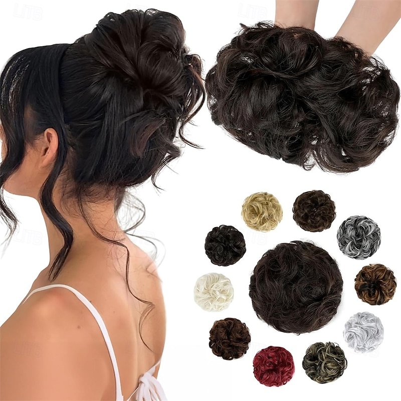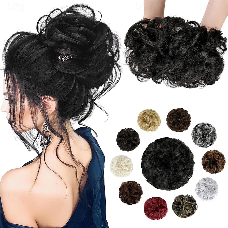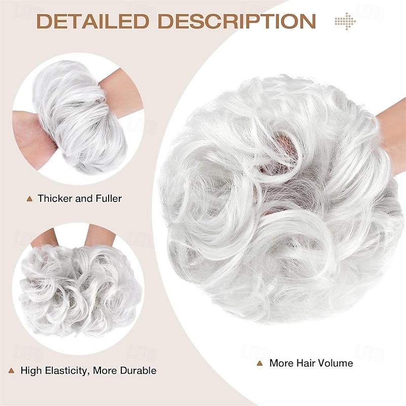 popular ! Messy Bun Hair Piece Wavy Curly Scrunchies Fluffy Donut Thick Updo Elegant Chignon Hairpieces for Women Girls Silver Grey 1.4oz