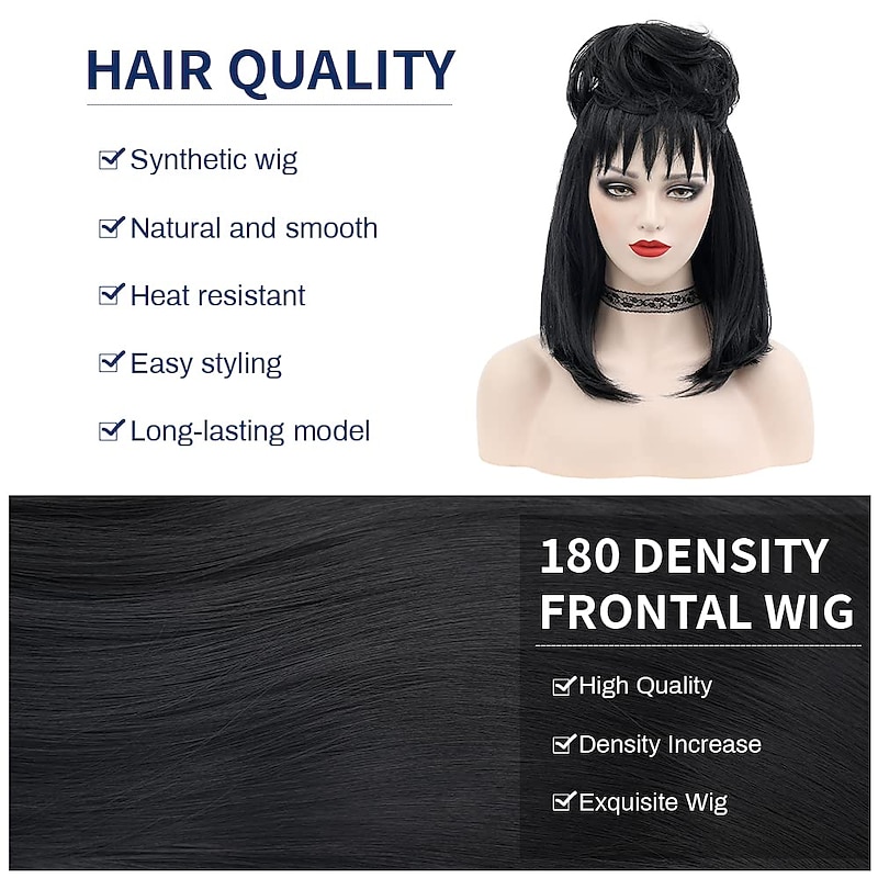 Why Choose Beetlejuice 2 Lydia Deetz Cosplay Costume Party Wig Bride Fluffy Buns Curly Women'S Black Medium Long Straight Beetle Wig With Bangs Carnival Costume Accessories Halloween Wigs?