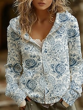 Why Choose Women's Zip Up Hoodies Pullover Floral Fashion Streetwear Casual Long Sleeve Hooded Regular Tops Dailywear Casual Zipper Print Blue Spring Fall Winter?