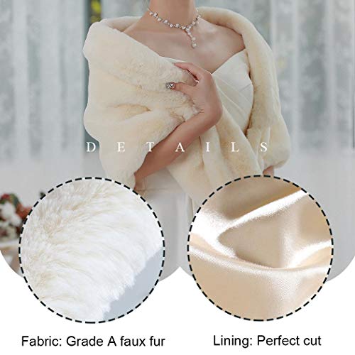 • Women's faux fur shawls for weeding are make of grade A faux fur material. They are very gentle and close to your skin that can keep you toasty and elegant.