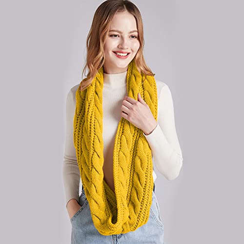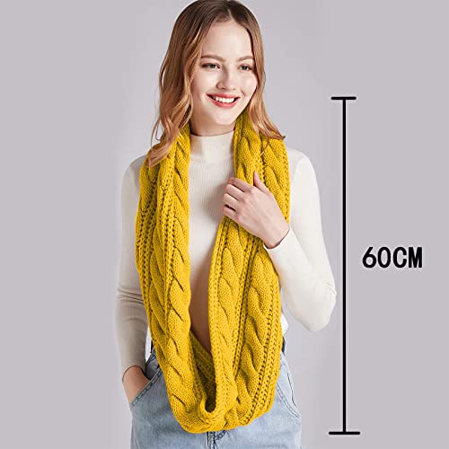 POLG Women Winter Ribbed Circle Loop Scarf Knit Infinity Chunky Cable Knit Scarf Thick Neck Warmer for Women (Yellow, One Size) 7