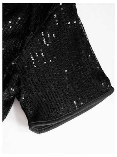 - Features: Sequin, short sleeve, single-breasted, collared neck, sparkly shirts, party shirt top