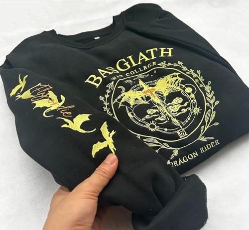 Embroidered Fourth Wing Sweatshirt - Embroidery 4th Wing Hoodie, Dragon Rider T-shirt, Gift for Fantasy Bookish Shirts (Dragon Rider - 1, Sand, S) 1
