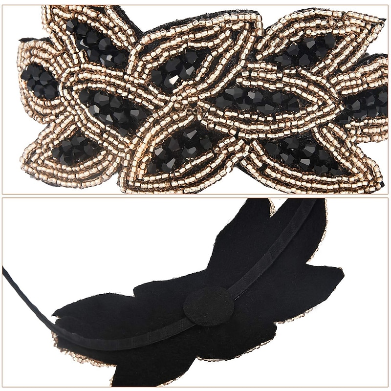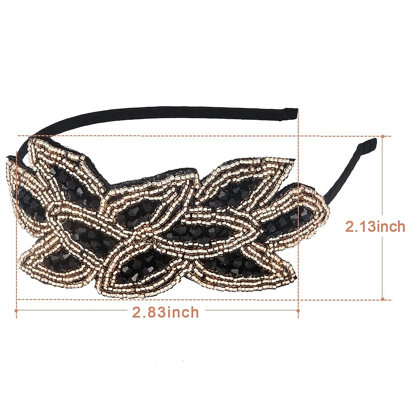 Highlights Headband design: headband is designed with a leaf shape wrapped near the top of the head, which is the style of the 1920s; It is very snug to wear and very popular with women; It won't scratch the scalp or skin, making it comfortable to wear on the head Measurement: the diameter of headband is 12 cm/ 4.72 inches, the metal band is 0.5 cm in width, it is a good size to fit for your head, and its size also can be adjusted to your head Quality material:the surface is made of beads and rhinestone, creating a glamorous sparkling effect, the beading is backed with felt material, soft and bendable, the metal band itself is wrapped in black fabric (including the edges of it) Wide applications: suitable for many occasions, like 1920s costume, birthday party, Halloween party and so on; Package contents: comes with 3 different styles of headband, enough quantity to meet your needs Perfect for everyday use. first-class materials and excellent craftsmanship ensure long-lasting durability.
