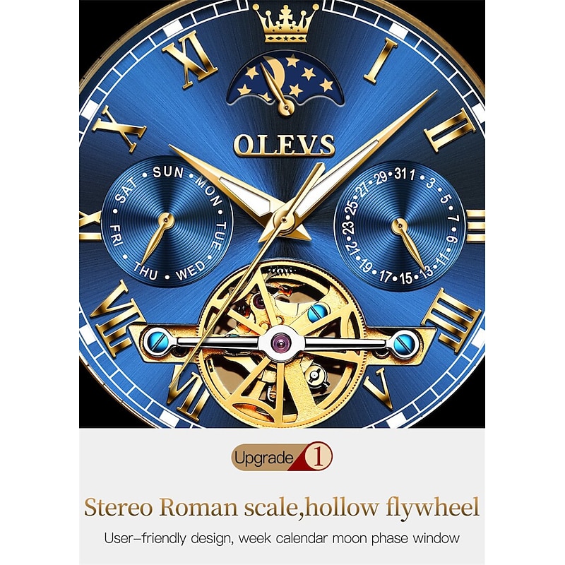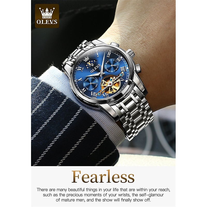 More information about OLEVS Men Mechanical Watch Calendar Luxury Waterproof Fashion Automatic Self-winding Moon phase Luminous Stainless Steel Strap Watch