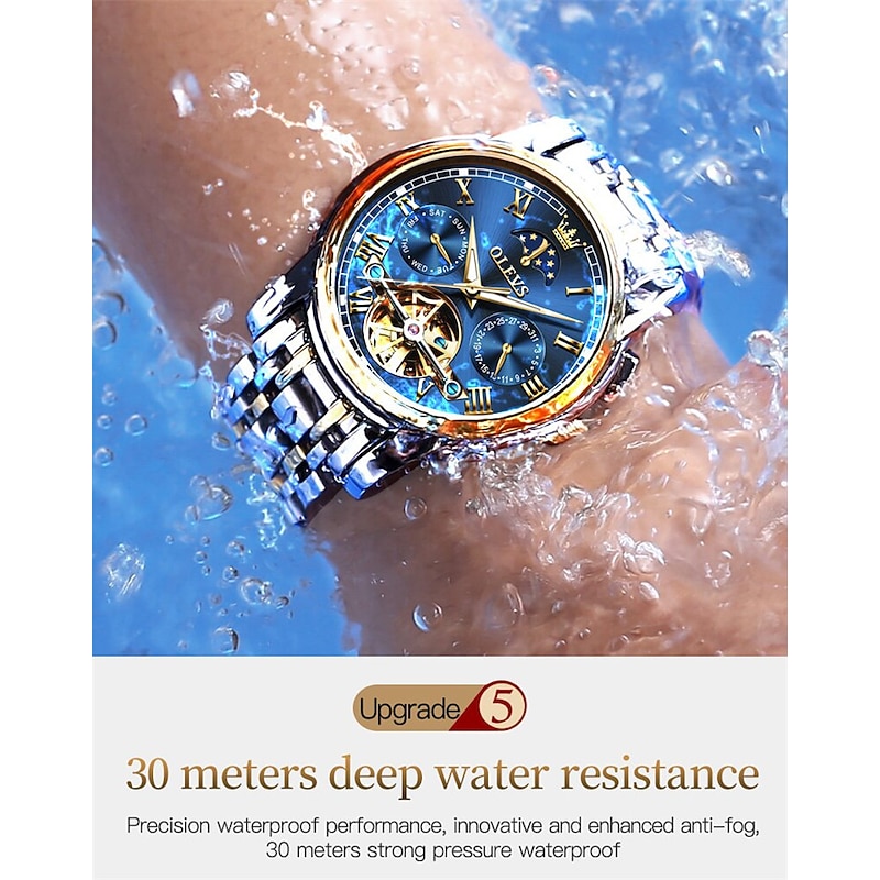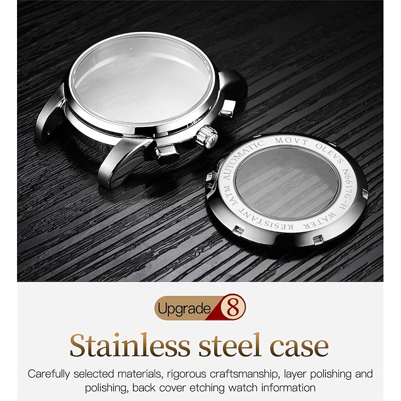 OLEVS Men Mechanical Watch Calendar Luxury Waterproof Fashion Automatic Self-winding Moon phase Luminous Stainless Steel Strap Watch 11