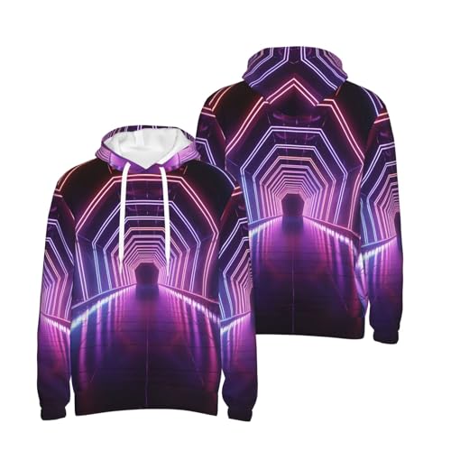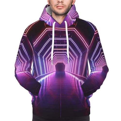 Men's Fleece Pullover Hoodie Long Sleeve Hooded Neon Lights Tunnel Sweatshirt Casual Shirts With Pockets 6
