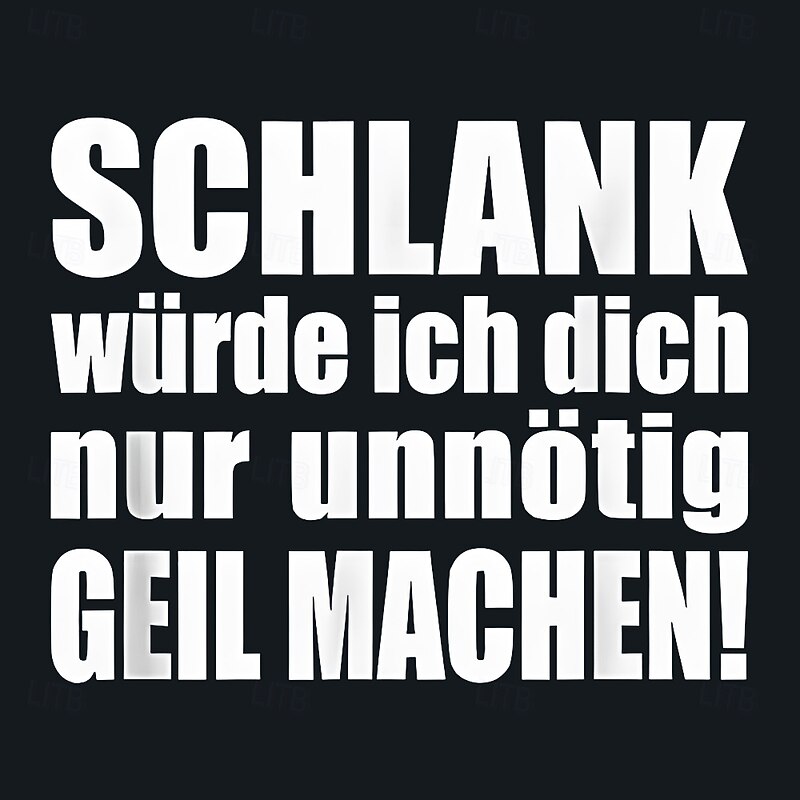 At www.3decard.com, we believe in providing our customers with only the best products. This Men's Funny German Quote Graphic T-Shirt: "SCHLANK würde ich dich nur unnötig GEIL MACHEN!" Relationships Humor Tee is designed with attention to detail and high quality craftsmanship that you can see and feel. Whether you're looking for functionality, style, or both, this product delivers exceptional value.