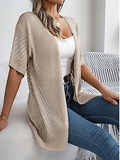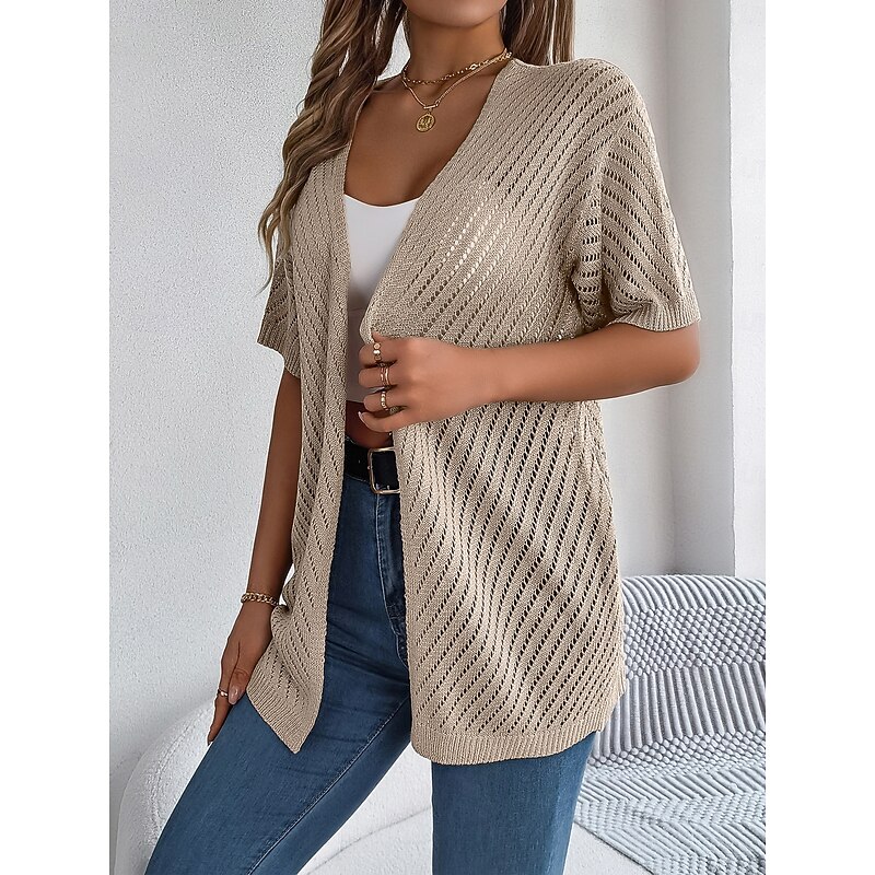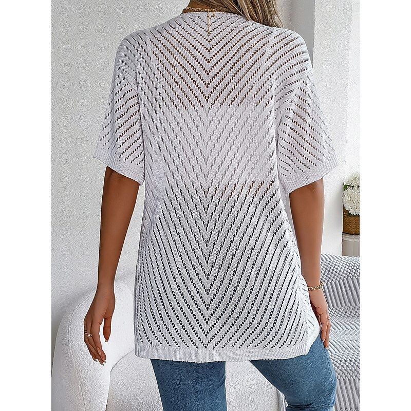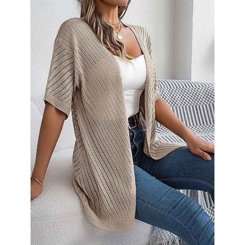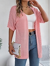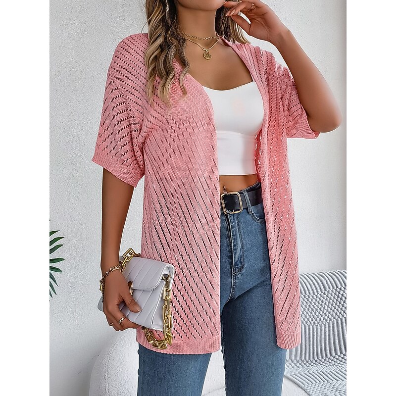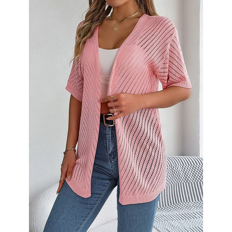 Why Choose Women's Cardigan Cable Knit Sweater Streetwear Daily sleek Pure Color Cable Crochet Open Front Mesh Knitted Drop Shoulder Short Sleeves Long Tops Knit Home Party Daily White Pink Summer Spring?