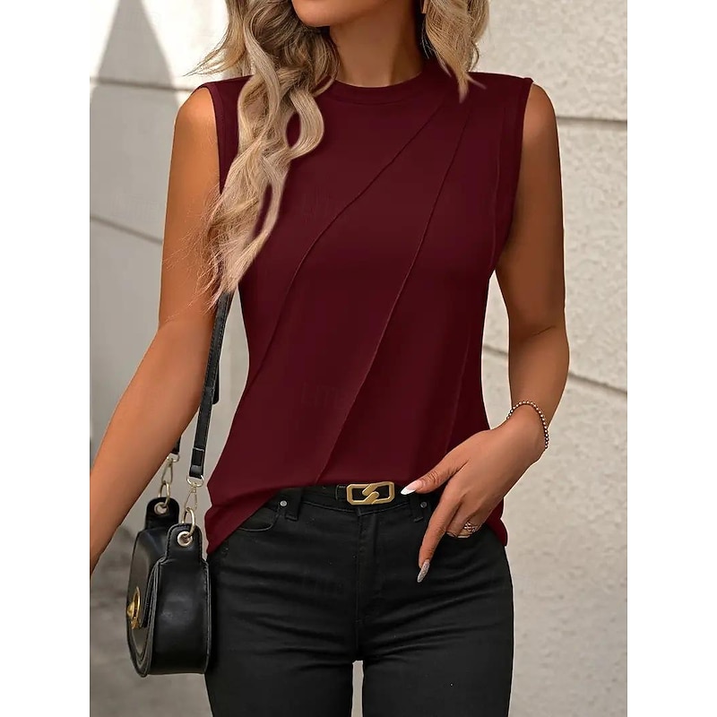 : This top showcases a sexy yet understated style, making it a fashionable choice for the modern woman. Its plain pattern and sleeveless design create a chic and streamlined look, suitable for those who appreciate subtle elegance.