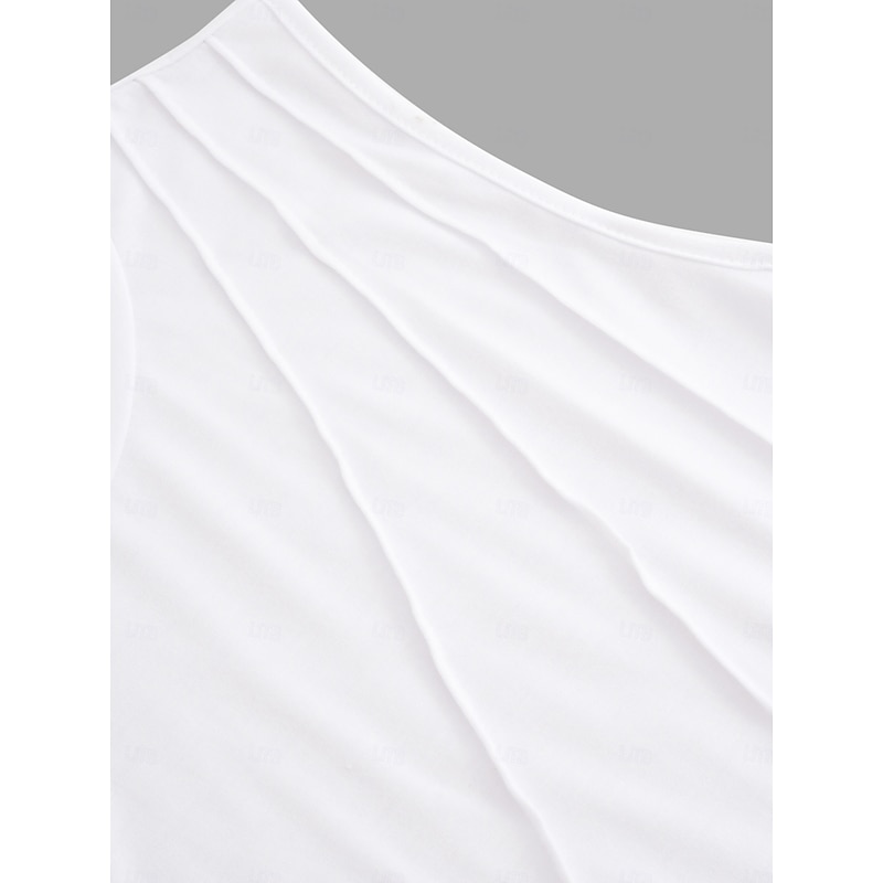 More information about Women's Camisole Tank Top Sleeveless Round Neck White Asymmetrical Layered Elegant Draped Summer Spring Casual Workwear Regular Fit Versatile Top Clothing Apparel
