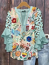This Women's T Shirt Floral Fashion new-age 3/4 Length Sleeve V Neck Regular Tops Daily Ruffle Print Blue Summer combines elegant design with practical functionality. Every detail has been carefully considered to ensure you get the best possible experience. The excellent construction means this product will serve you well for years to come.