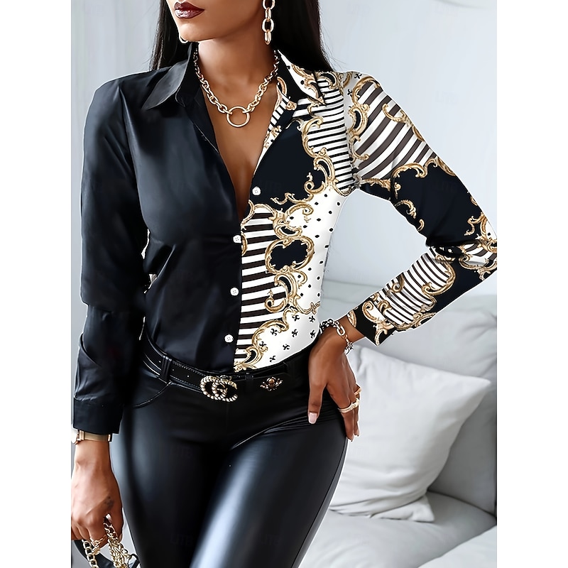 This Women's Work Shirt Graphic Leopard Elegant sleek Casual Long Sleeve Shirt Collar Regular Tops Work Party Evening Wear Daily Black White Red Gold Summer Fall Winter Spring, Fall, Winter, Summer combines elegant design with practical functionality. Every detail has been carefully considered to ensure you get the best possible experience. The finest construction means this product will serve you well for years to come.