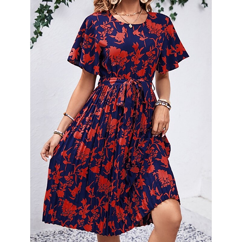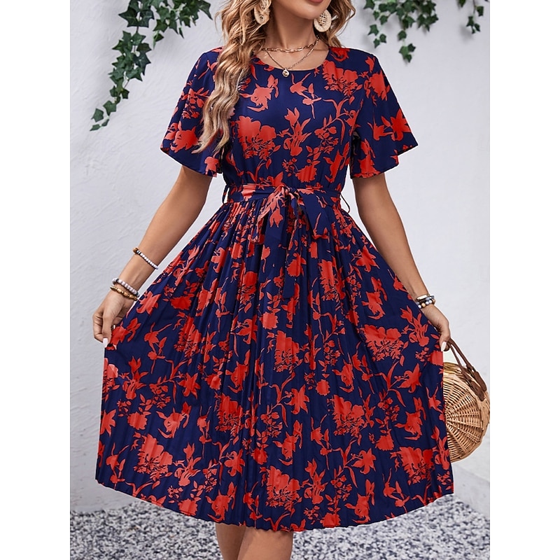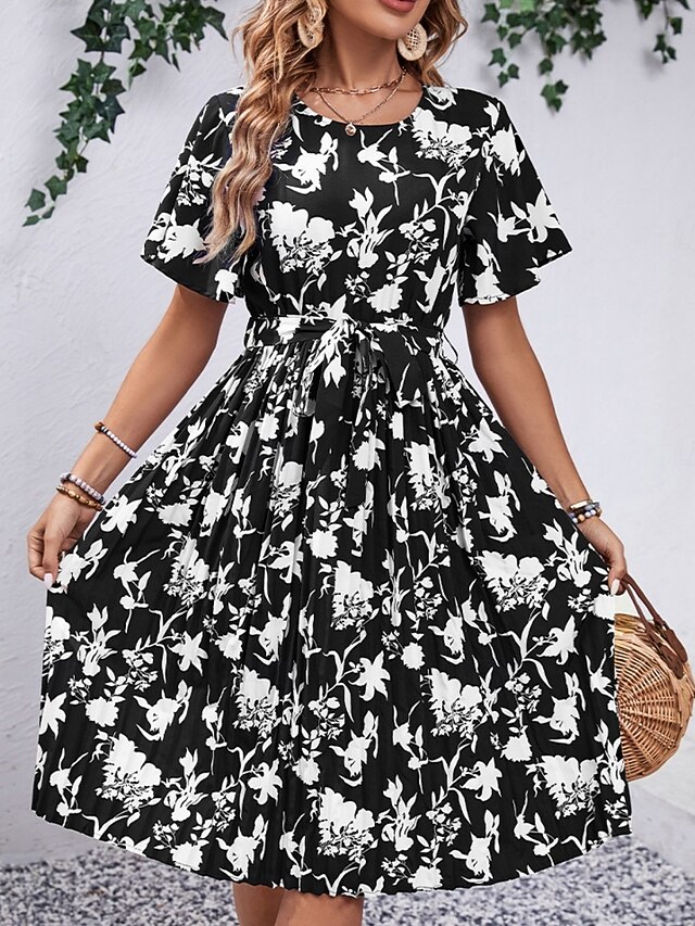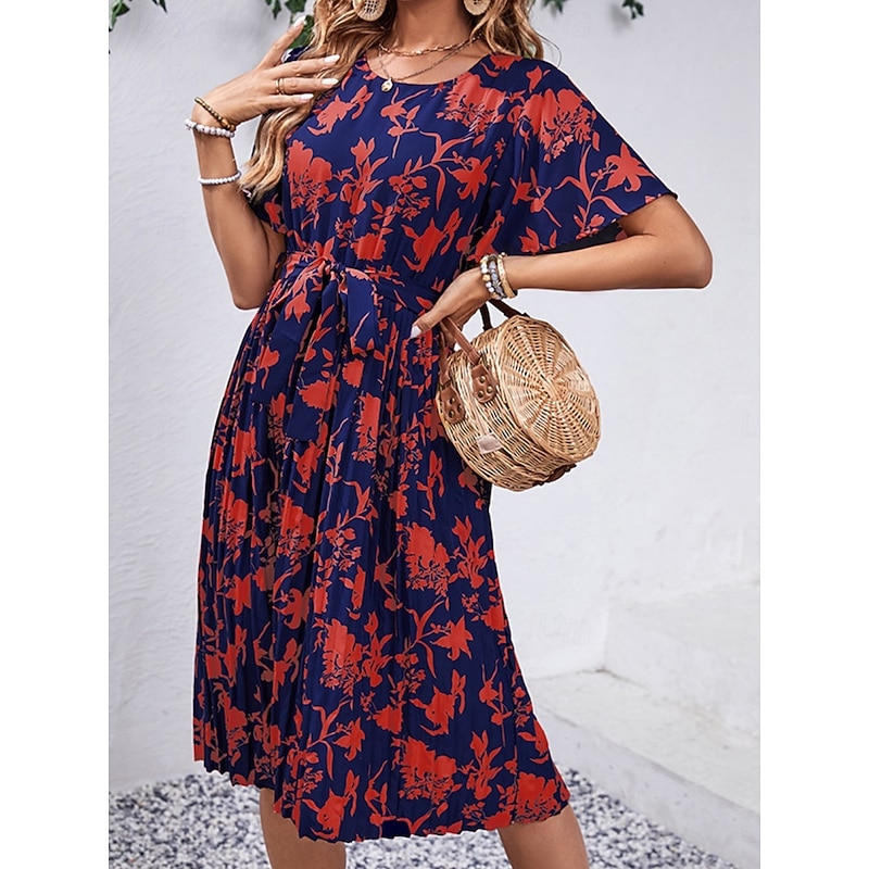 popular ! Women's Midi Dress Casual Dress Swing Dress A Line Dress chic Casual Vacation Daily Regular Fit Floral Short Sleeve Crew Neck Black Red Spring Fall